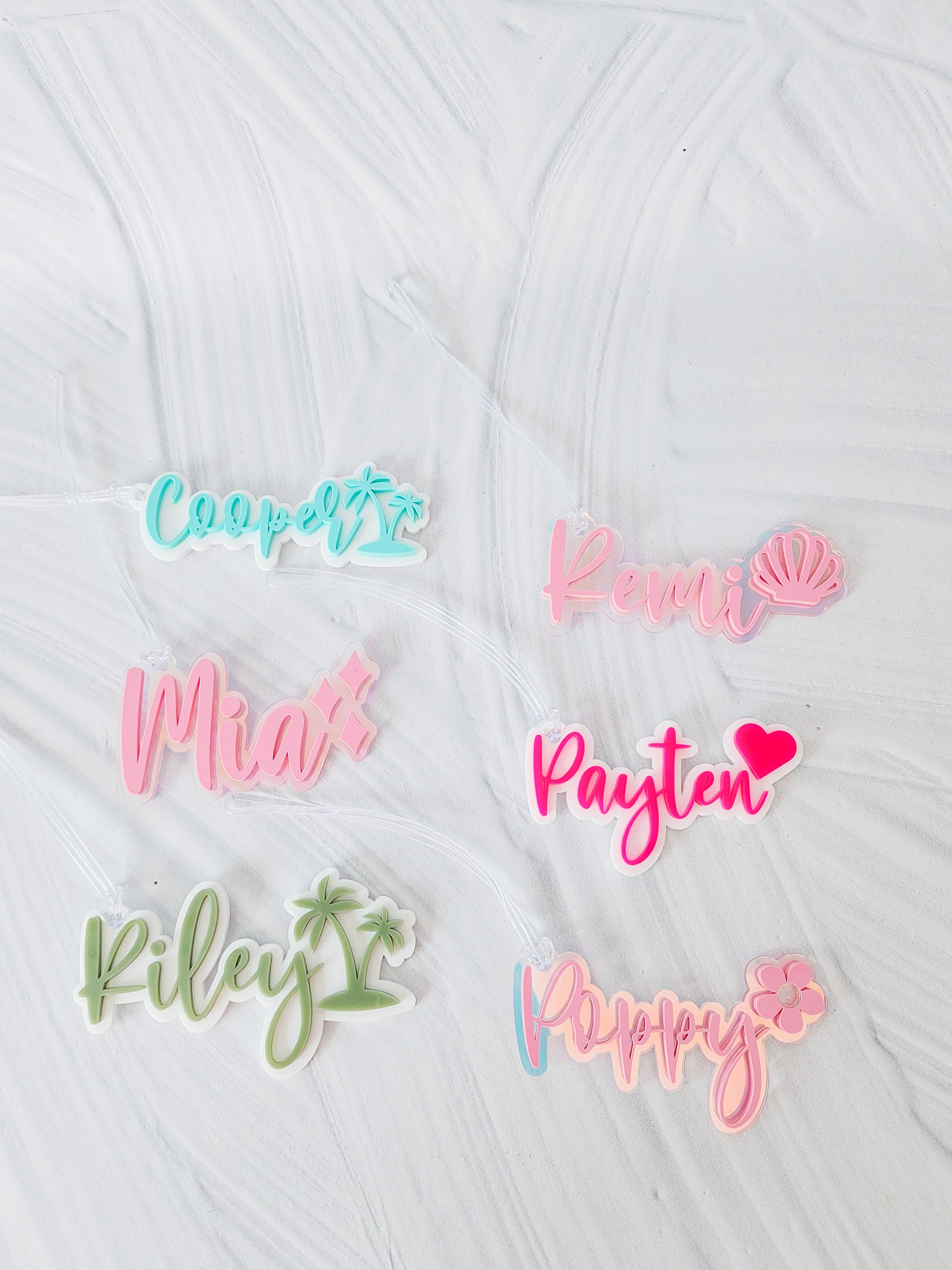 Personalised Acrylic Bag Tag - Double layered acrylic with motif. Choose between: